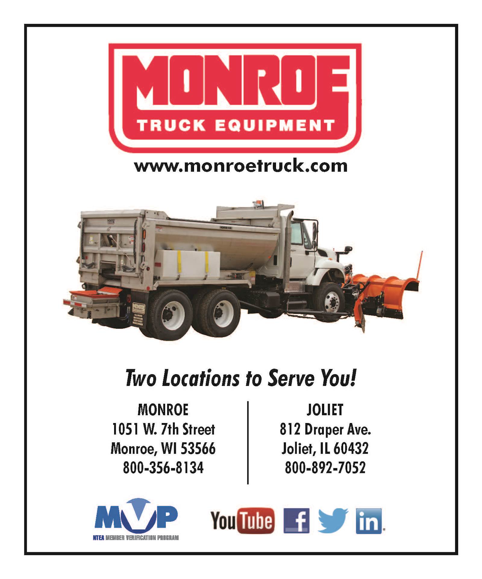 Monroe Truck Equipment Monroe Truck Equipment Expanded To Joliet Il In 1983 Created A Market Presence In The Region This Facility Offers Installation Of Commercial And Municipal Truck Equipment As Well